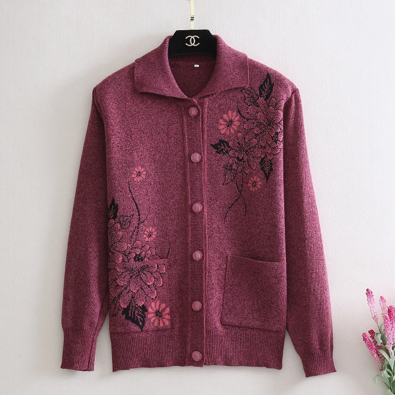 Best Chance of Middle-aged fashion wool sweater cardigan jacketPlus size Women autumn winter new warm casual kniti